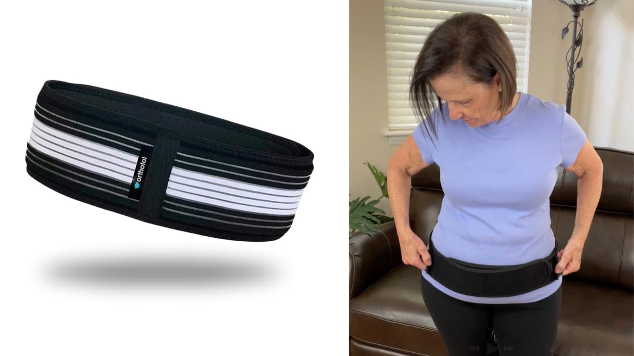 Legen Sie den Orthogürtel um Ihre Hüfte, nicht über den Bauch, wie ein herkömmliches Lendenkorsett.